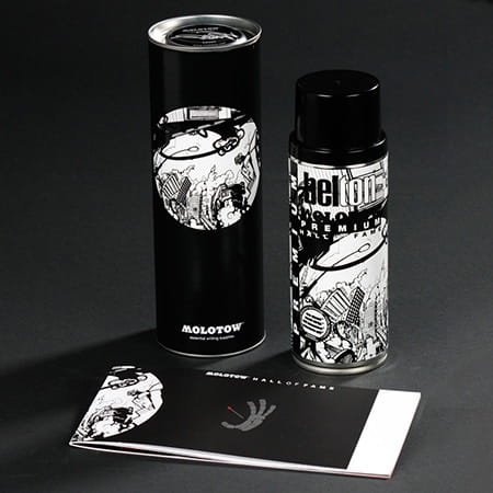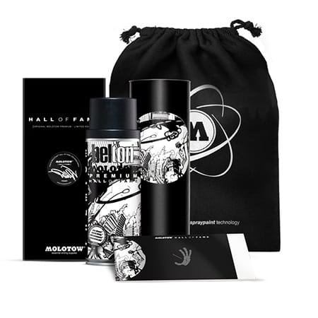 Specjalna edycja kolekcjonerska,w skład której wchodzą: - farba Molotow Premium #214 TOAST signal black - książeczka z portfolio artysty - tuba na farbę z grafiką artysty i gumowaną naklejką z tagiem - kartonowe pudełko z tagiem TOAST'a - woreczek Molotow