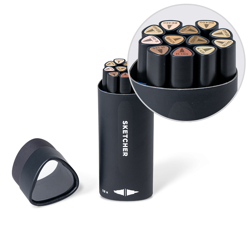 Estetyczny kształt i soczyście głębokie kolory.Zestawy Sketcher w unikalnym opakowaniu, w kształcie markerów, idealnym do przechowywania.