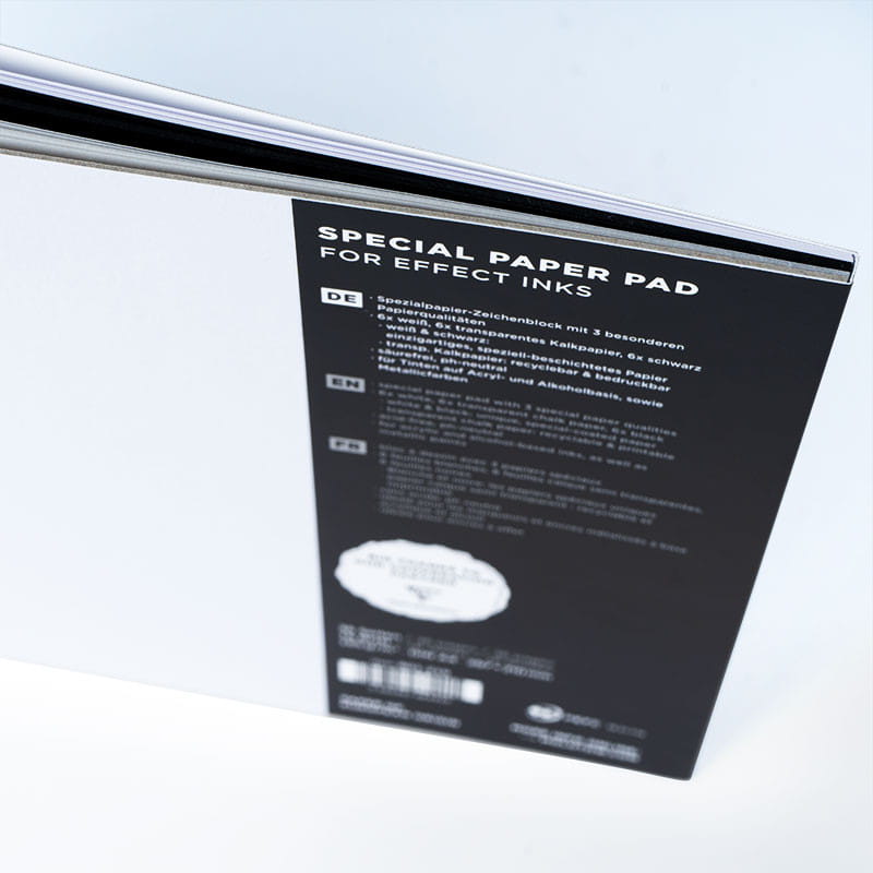• Specjalny zestaw papieru opracowany z myślą o efektowych tusza na bazie alkoholu i akrylu marki Molotow. Osiemnaście sztuk kartek w rozmiarze A4.